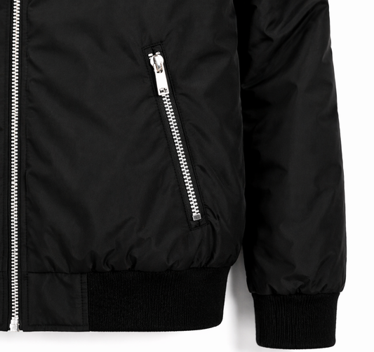 Blouson bomber homme noir zippé – coupe moderne, col rayé, style urbain élégant